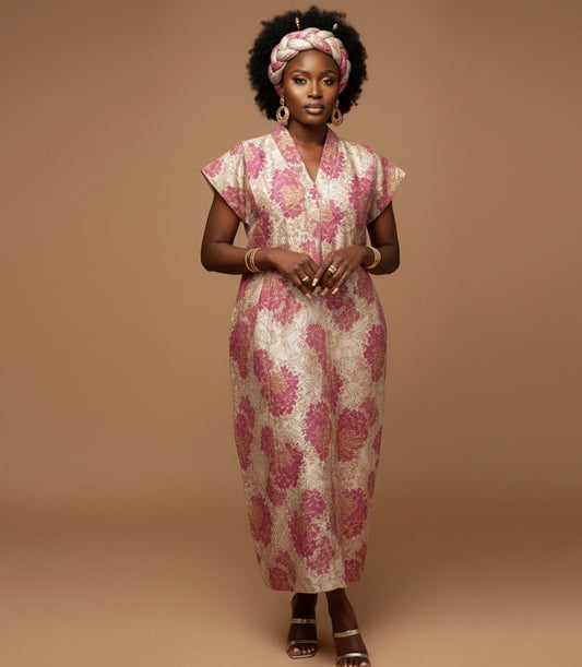 Awa Floral Jacquard Kaftan – Elegant Waist-Defining Design
