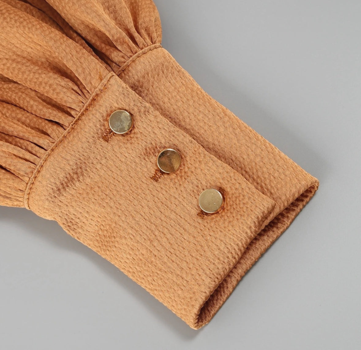 - Balloon sleeves: Adds softness and balance to the structured waist.