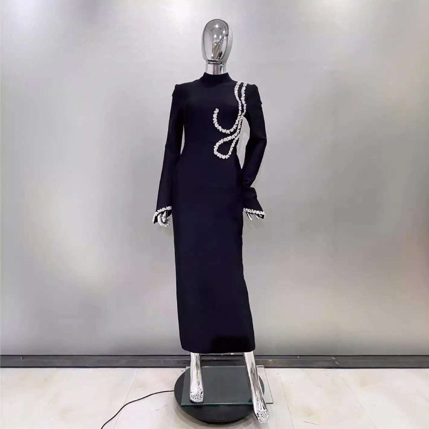 Elevate your look with the Chain Elegance Bandage Dress, a masterpiece of refinement that perfectly sculpts your silhouette. Designed in a structured stretch fabric, this long-sleeved sheath dress blends modern chic with timeless sophistication. The subtle chain detail adds a touch of light and luxury — ideal for evenings, galas or elegant celebrations.